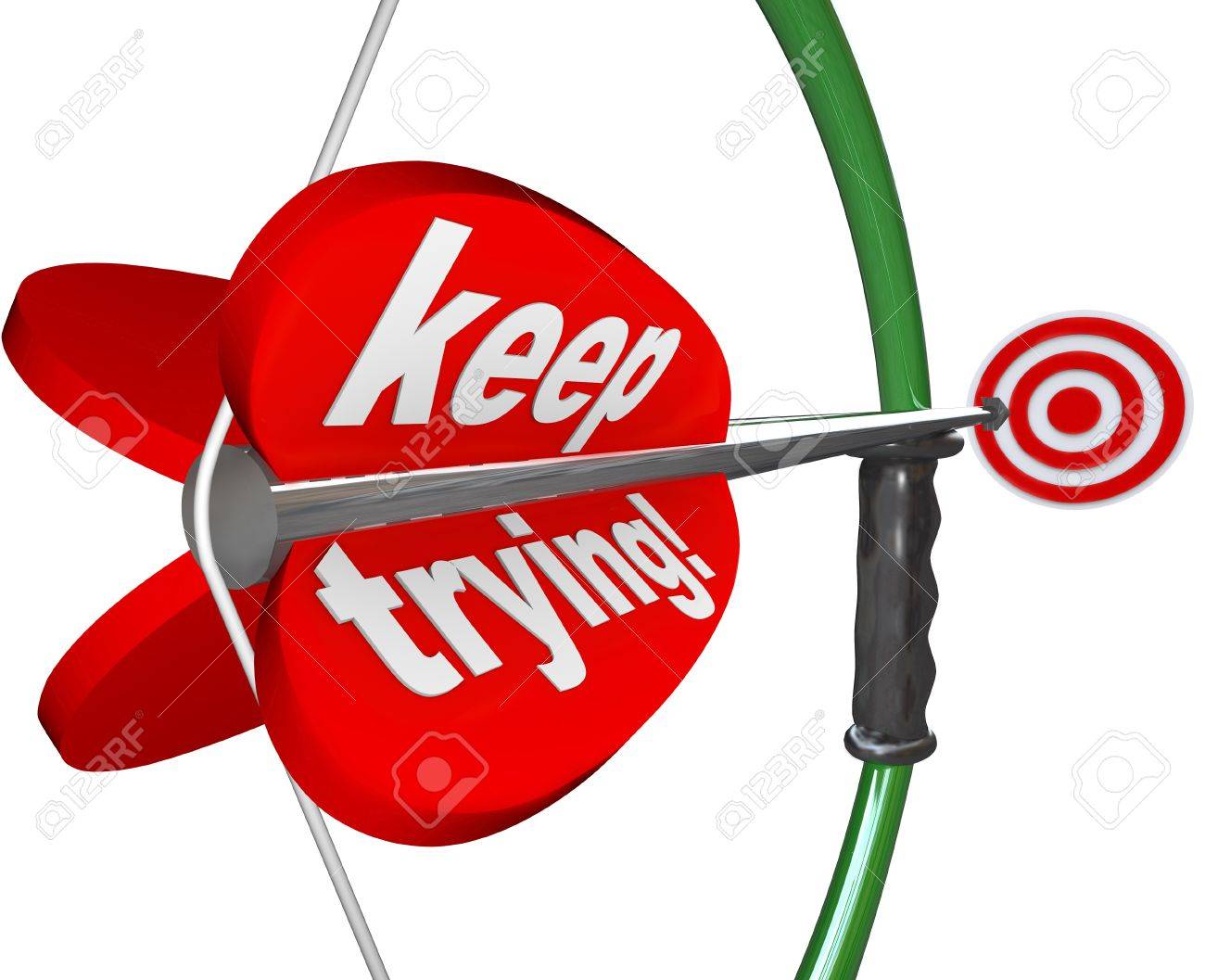 Les Mots Continuer A Essayer Sur Un Arc Et Une Fleche Visant Une Cible Pour Illustrer La Determination La Perseverance Le Devouement La Volonte Et Resoudre Pour Atteindre Un Objectif Ou De